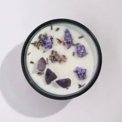 Step into a world of calm with our Crystal Floral Candle – The Moon, an artisanal creation infused with Amethyst gemstones and soothing lavender flowers.