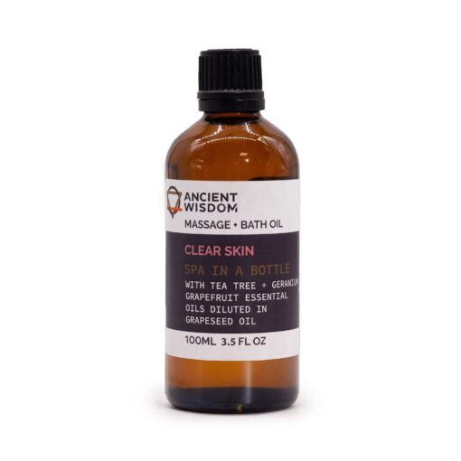 Indulge your senses and nourish your skin with our Clear Skin Bath & Massage Oil, a refreshing blend crafted to purify, balance, and leave skin beautifully soft. This invigorating formula combines Tea Tree, Geranium, and Grapefruit Essential Oils with pure Grapeseed Oil to cleanse, soothe, and hydrate the skin while uplifting the senses.