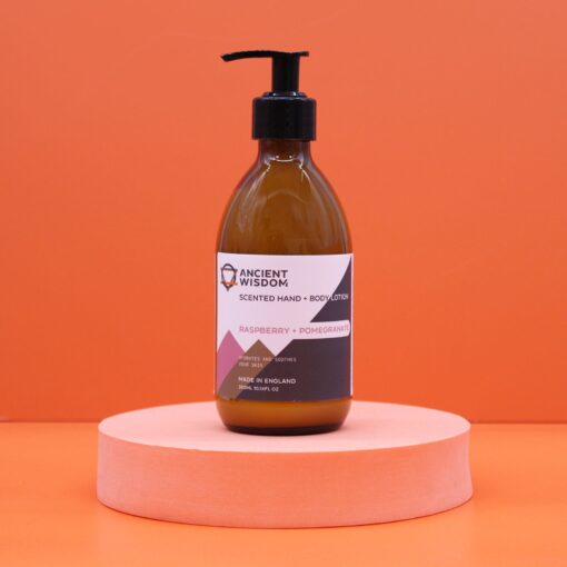 Indulge your skin with the fruity freshness of our Raspberry & Pomegranate Scented Hand & Body Lotion.