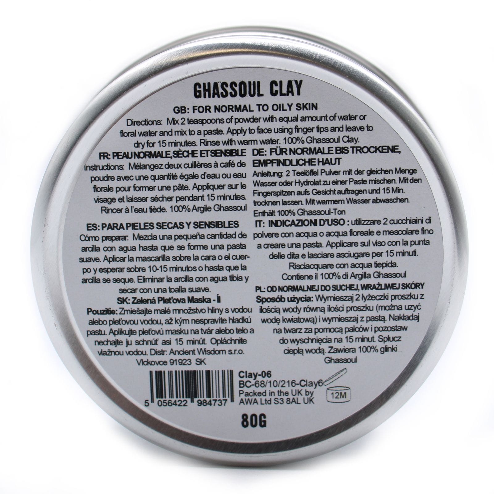 Ghassoul Clay Face Mask – mineral-rich Moroccan clay for oily, combination, and acne-prone skin. Mattifies, soothes, and leaves skin smooth & refreshed